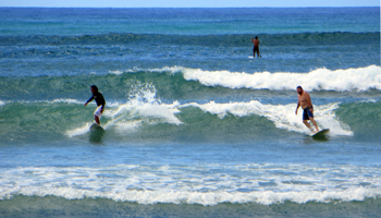 Nevertheless, there is one other decent beginner’s break at White Plains beach in the old Barbers Point Naval Air Station area of Kapolei. The water conditions are considerably less consistent than Waikiki, but they do rent boards and it’s a somewhat popular place for beginners to practice surfing in Hawaii. Because the waves are frequently not as ideal as elsewhere, the tradeoff tends to be smaller crowds in the water. I’ve surfed at both Waikiki and White Plains hundreds of times each, and I enjoy them both. But for my kids, who are just learning to surf, they definitely prefer Waikiki.