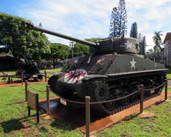 But regardless of the museum’s small size and collection, this Hawaii attraction can still be a fun learning experience. The building itself is one of the most historic structures on Schofield Barracks. Initially constructed as the post library, it is the only edifice built with lava rock walls. Surrounding the exterior of the building, you can see military combat equipment such as a Sherman tank, howitzers, a Vulcan air defense system, and more. Then when you go inside, there’s a period display for every conflict in which the 25th Infantry Division has fought.